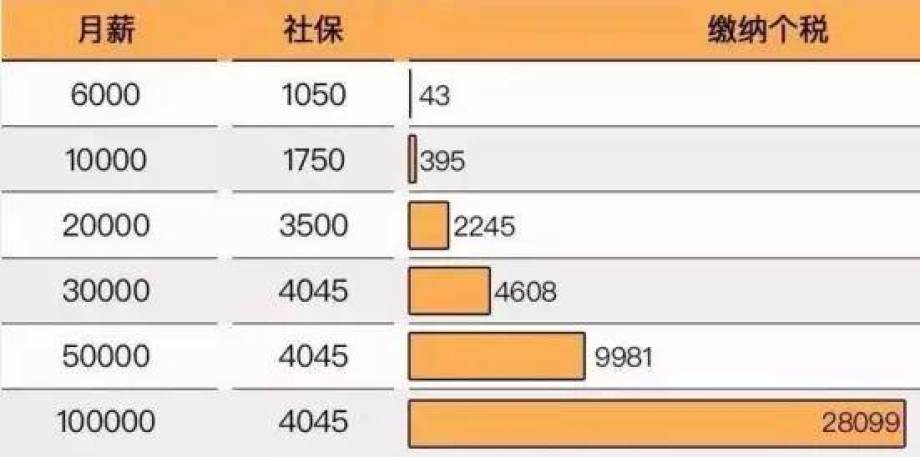 对于工薪族来说,大部分人薪水在6000-50000元之间,工资越高,个税越多: