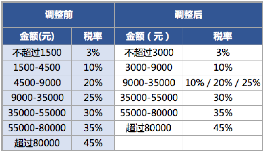 2、个税起征点由每月3500元提高至每月5000元(每年6万元);